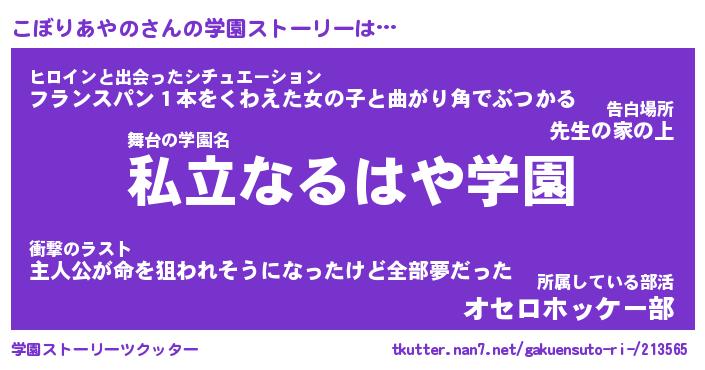 | 伝説のあだ名 | 『不死鳥のスナイパーこぼりあやの』 |
