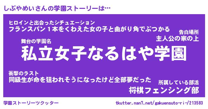 | 女子向けラノベタイトル風あだ名 | 『誰かこのしぶやめいを説明してください! ~契約から始まるウェディング~』 |