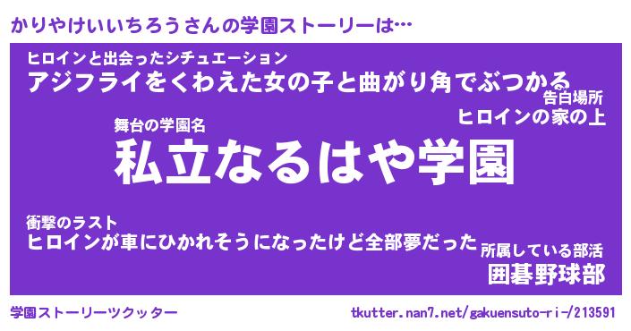 | 男性向けラノベタイトル風あだ名 | 『かりやけいいちろうの憂鬱』 |