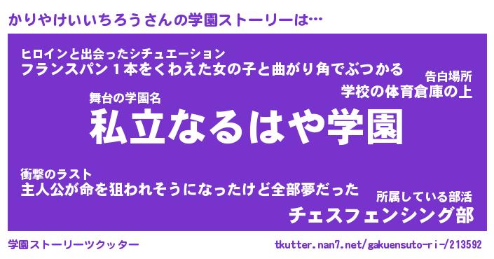 | 女子向けラノベタイトル風あだ名 | 『(仮)かりやけいいちろうのやんごとなき事情』 |