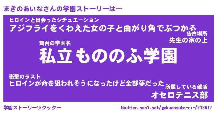 | 女子向けラノベタイトル風あだ名 | 『まきのあいな姫と円卓の騎士』 |