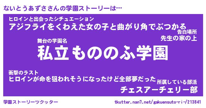 | 伝説のあだ名 | 『伝説の竜騎士ないとうあずさ』 |