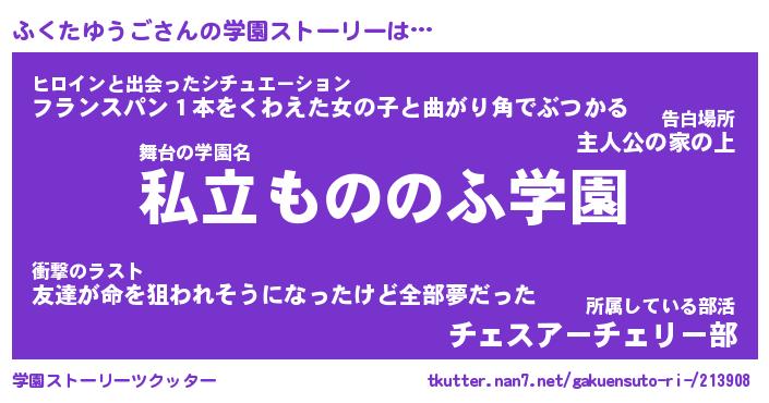 | 女子向けラノベタイトル風あだ名 | 『(仮)ふくたゆうごのやんごとなき事情』 |