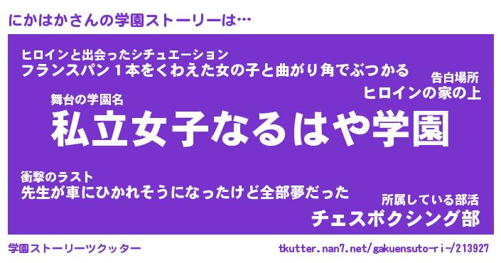 | 告白場所 先生の家の上 …「ふぃぎゅこ」 | 2月17日 06:24 |