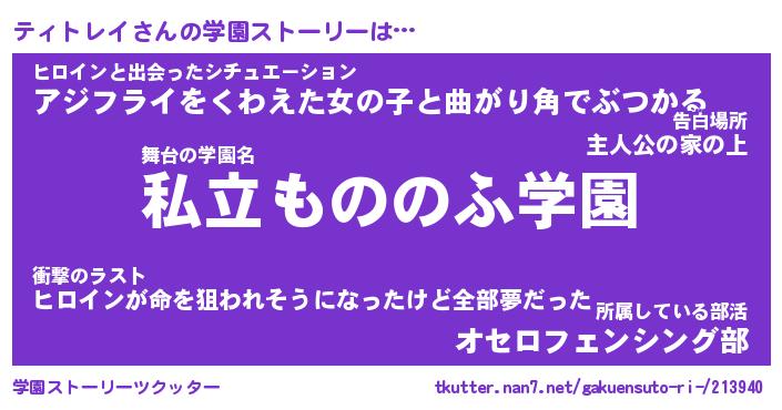 | 男性向けラノベタイトル風あだ名 | 『ティトレイの憂鬱』 |