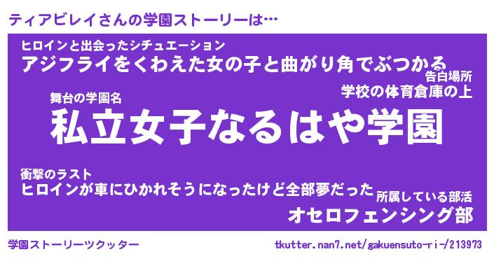 | ヒーロー風カッコイイあだ名 | 『スーパーティアビレイ』『天弓騎士ティ』 |