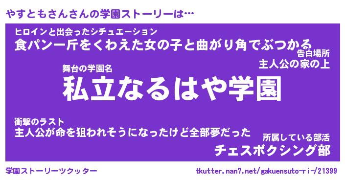 | 男性向けラノベタイトル風あだ名 | 『やすともさんの憂鬱』 |