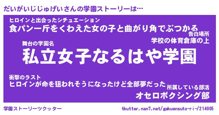 | 胡散臭い通販商品みたいなあだ名 | 『モテモテ間違いなし霊験あらたかなお札…その名も「だいがいじじゅげい」』 |