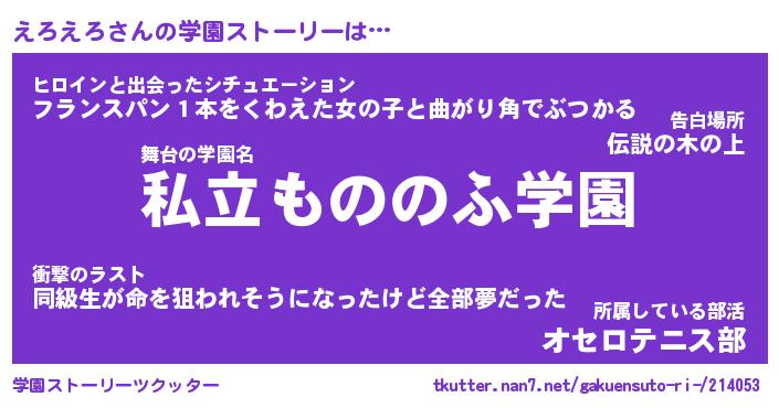 | 男性向けラノベタイトル風あだ名 | 『えろえろの憂鬱』 |