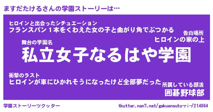 | 女子向けラノベタイトル風あだ名 | 『誰かこのますだたけるを説明してください! ~契約から始まるウェディング~』 |