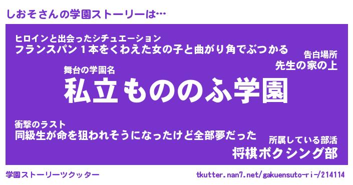 | 男性向けラノベタイトル風あだ名 | 『しおその憂鬱』 |