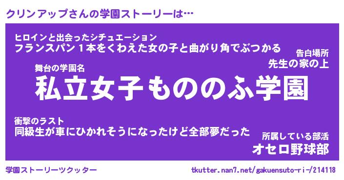 | 女子向けラノベタイトル風あだ名 | 『クリンアップ姫と円卓の騎士』 |