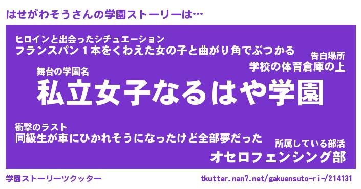 | ファンタジー風あだ名 | 『ハセフェル』『ファントムハセス』 |