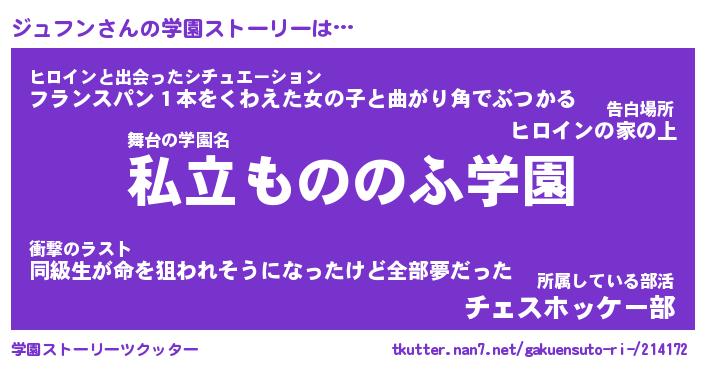 | 女子向けラノベタイトル風あだ名 | 『ジュフン姫と円卓の騎士』 |