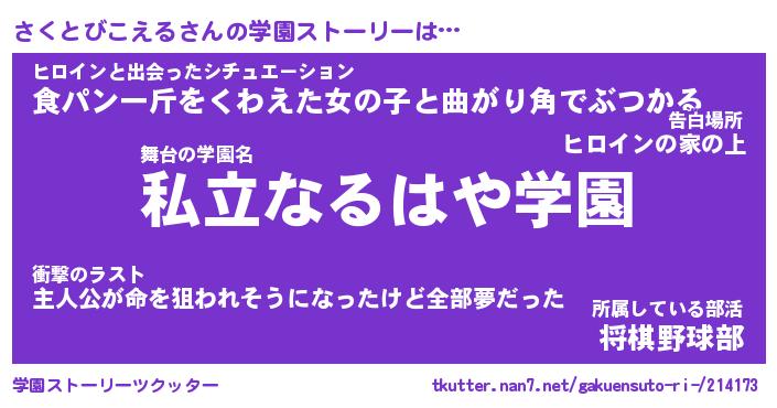 | 男性向けラノベタイトル風あだ名 | 『さくとびこえるの憂鬱』 |