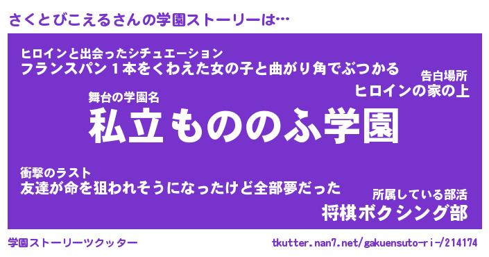 | 男性向けラノベタイトル風あだ名 | 『さくとびこえるの憂鬱』 |