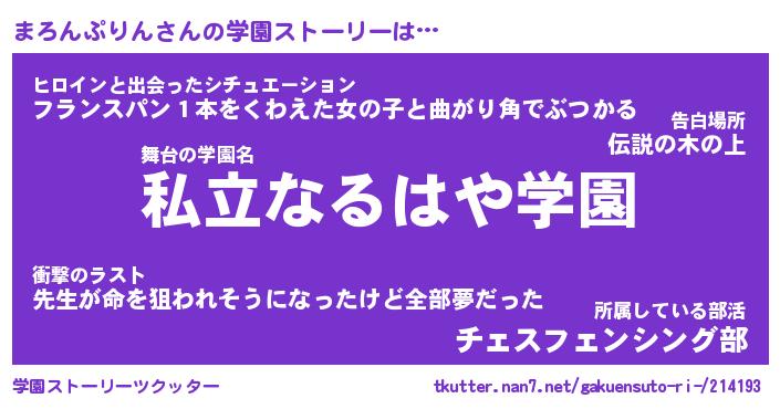 | 伝説のあだ名 | 『不死鳥のスナイパーまろんぷりん』 |