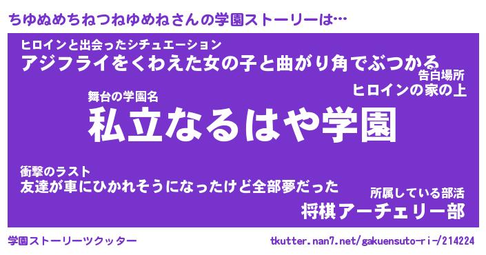 | 伝説のあだ名 | 『伝説のスナイパーちゆぬめちねつねゆめね』 |