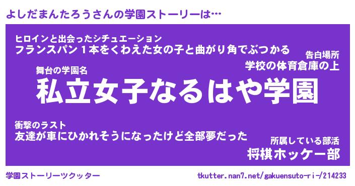 | 伝説のあだ名 | 『封印されしスナイパーよしだまんたろう』 |