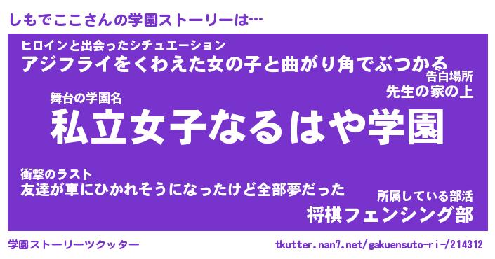 | 告白場所 先生の家の上 …「ふぃぎゅこ」 | 2月17日 06:24 |