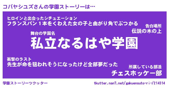 | 肩書あだ名 | 『コバヤシユズ御曹司』 |
