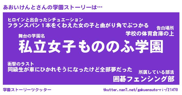 | 男性向けラノベタイトル風あだ名 | 『アオイケントアートオンライン』 |