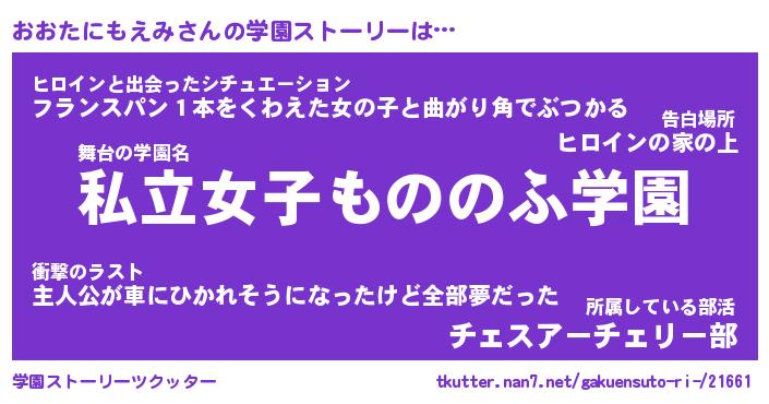 | 女子向けラノベタイトル風あだ名 | 『誰かこのおおたにもえみを説明してください! ~契約から始まるウェディング~』 |