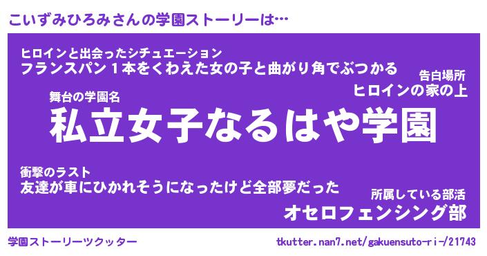 | 女子向けラノベタイトル風あだ名 | 『誰かこのこいずみひろみを説明してください! ~契約から始まるウェディング~』 |