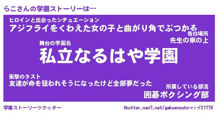 | 告白場所 先生の家の上 …「ふぃぎゅこ」 | 2月17日 06:24 |