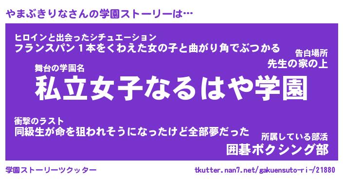 | 男性向けラノベタイトル風あだ名 | 『ヤマブキリナアートオンライン』 |