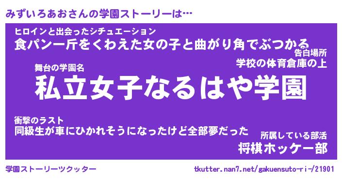 | 肩書あだ名 | 『みずいろあお社長令嬢』 |