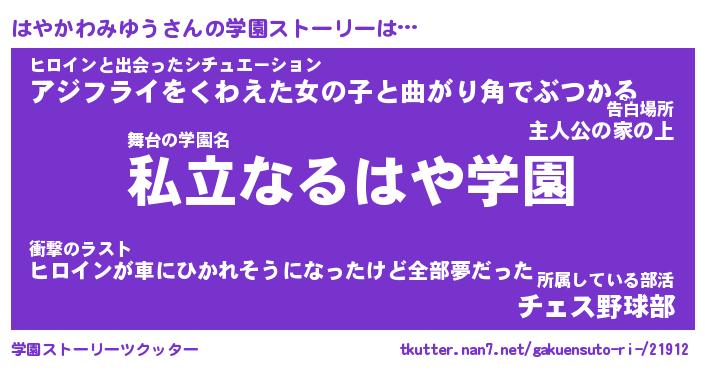 | 胡散臭い通販商品みたいなあだ名 | 『必ず成功する霊験あらたかなお札…その名も「はやかわみゆう」』 |