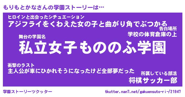| 男性向けラノベタイトル風あだ名 | 『モリモトカナアートオンライン』 |