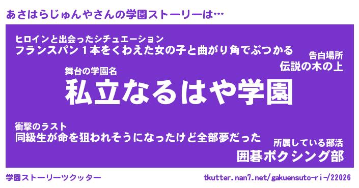 | 伝説のあだ名 | 『伝説のスナイパーあさはらじゅんや』 |