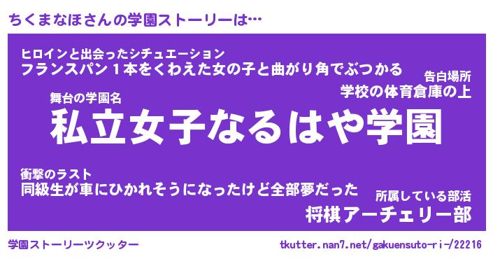 | 伝説のあだ名 | 『封印されしスナイパーちくまなほ』 |