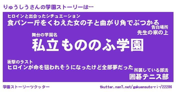 | 女子向けラノベタイトル風あだ名 | 『(仮)りゅうしうのやんごとなき事情』 |