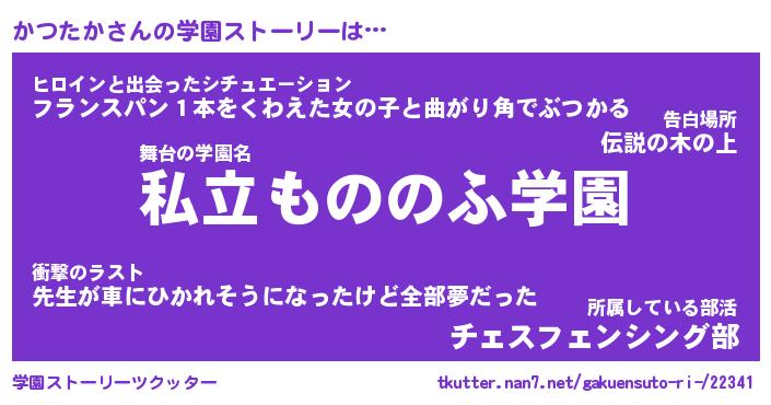 | 男性向けラノベタイトル風あだ名 | 『かつたかの憂鬱』 |