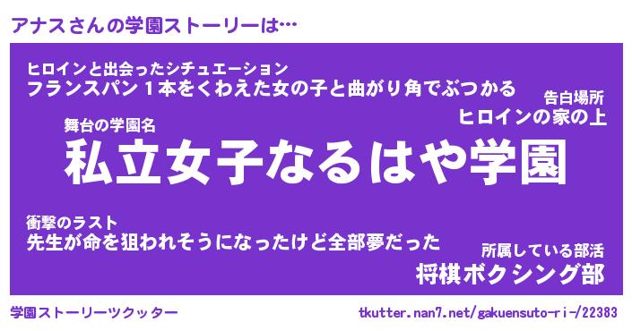 | 女子向けラノベタイトル風あだ名 | 『アナス姫と円卓の騎士』『アナス恋絵巻』 |