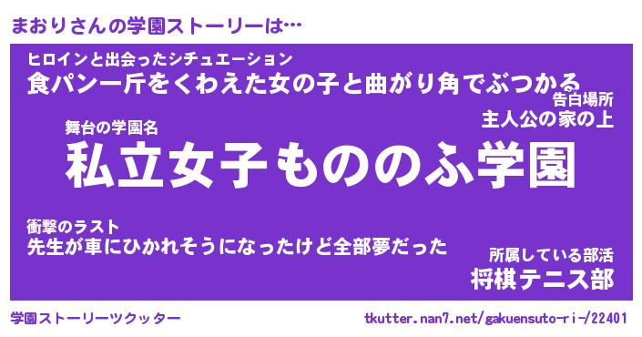 | 女子向けラノベタイトル風あだ名 | 『まおり姫と円卓の騎士』『まおり恋絵巻』 |