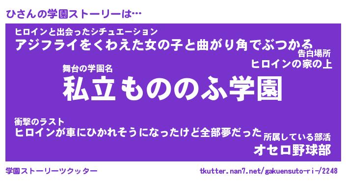 | 告白場所 先生の家の上 …「ふぃぎゅこ」 | 2月17日 06:24 |