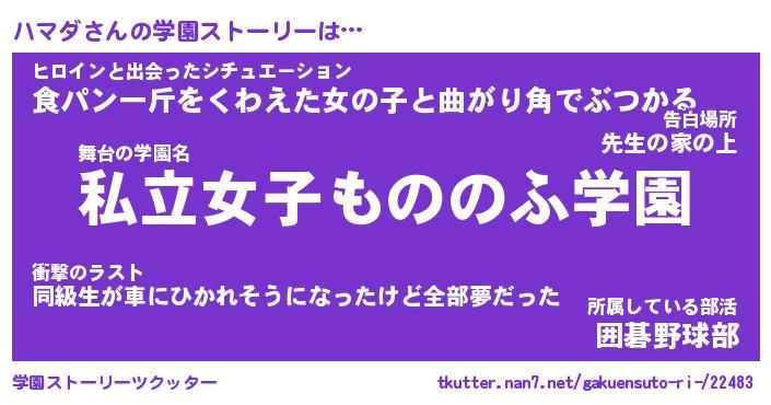 | ポケモン風あだ名 | 『ハマチュウ』『ハマダダネ』 |