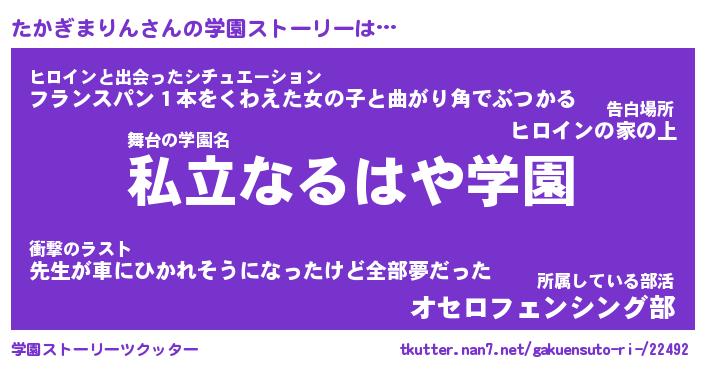 | 女子向けラノベタイトル風あだ名 | 『(仮)たかぎまりんのやんごとなき事情』 |