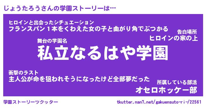 | 男性向けラノベタイトル風あだ名 | 『じょうたろうの憂鬱』 |