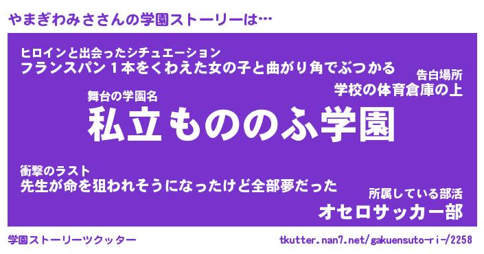 | 男性向けラノベタイトル風あだ名 | 『やまぎわみさの憂鬱』 |