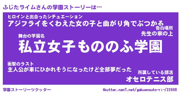 | 女子向けラノベタイトル風あだ名 | 『誰かこのふじたライムを説明してください! ~契約から始まるウェディング~』 |