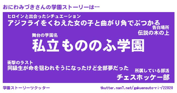 | 男性向けラノベタイトル風あだ名 | 『おにわみづきの憂鬱』 |