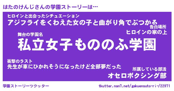 | 女子向けラノベタイトル風あだ名 | 『誰かこのはたのけんじを説明してください! ~契約から始まるウェディング~』 |
