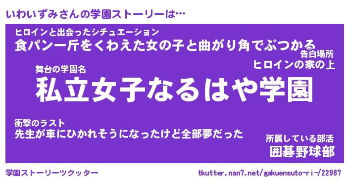 | 男性向けラノベタイトル風あだ名 | 『イワイズミアートオンライン』 |