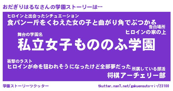 | 女子向けラノベタイトル風あだ名 | 『おだぎりはるな姫と円卓の騎士』 |