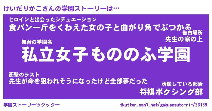 | 女子向けラノベタイトル風あだ名 | 『けいだりかこ姫と円卓の騎士』 |